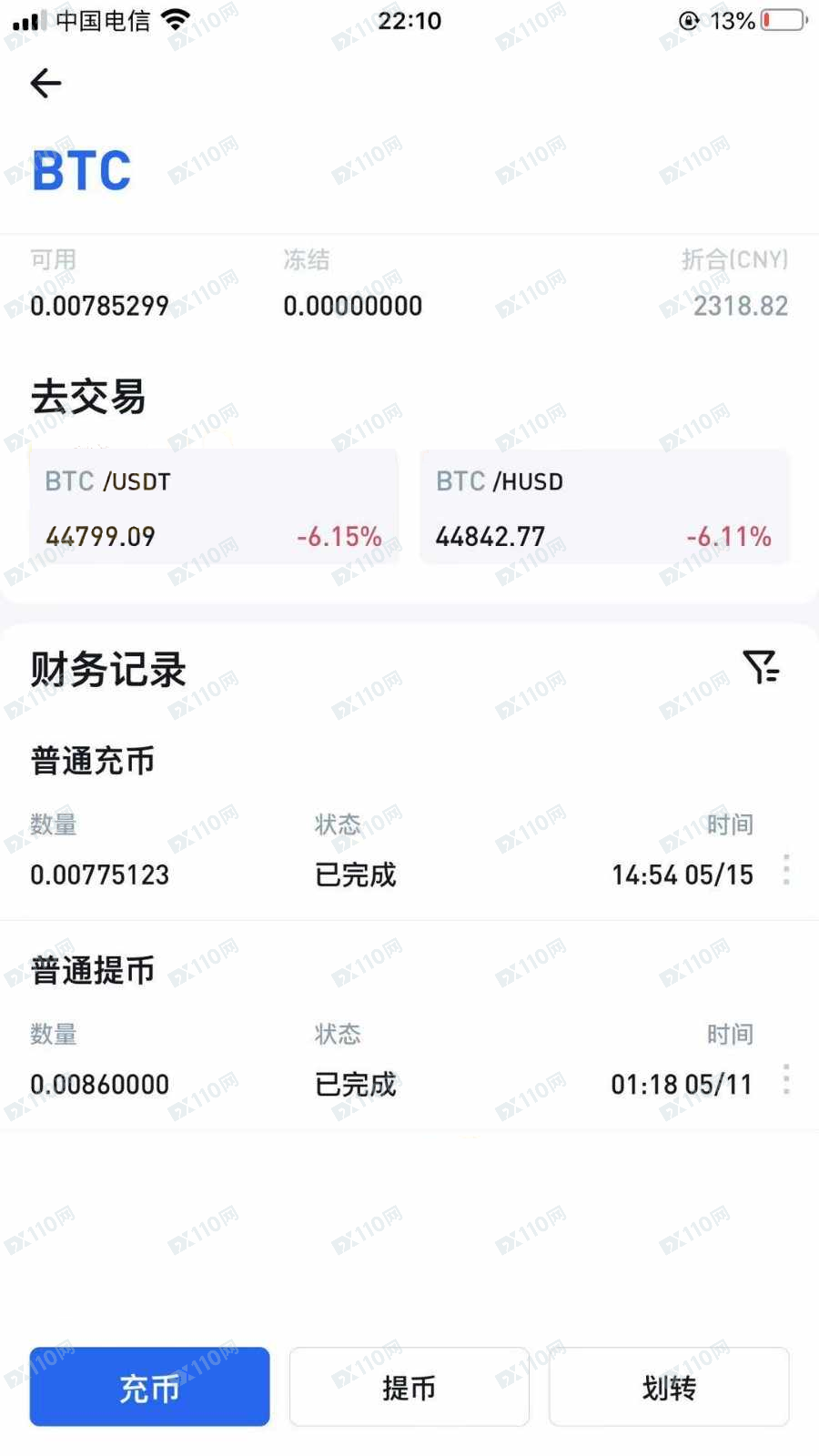 2021年5月11日,我入金500美金。充值0.0086个比特币(其中已包提币含手续费),当天比特币最高价格为57000不到。2021年5月15日,我出金490美金。收到该平台充币0.00775123个。换算成比特币价格高达63215。而当