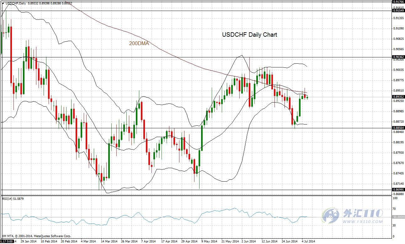 XM.com 技术分析 – 美元兑瑞郎下行击穿200日均线