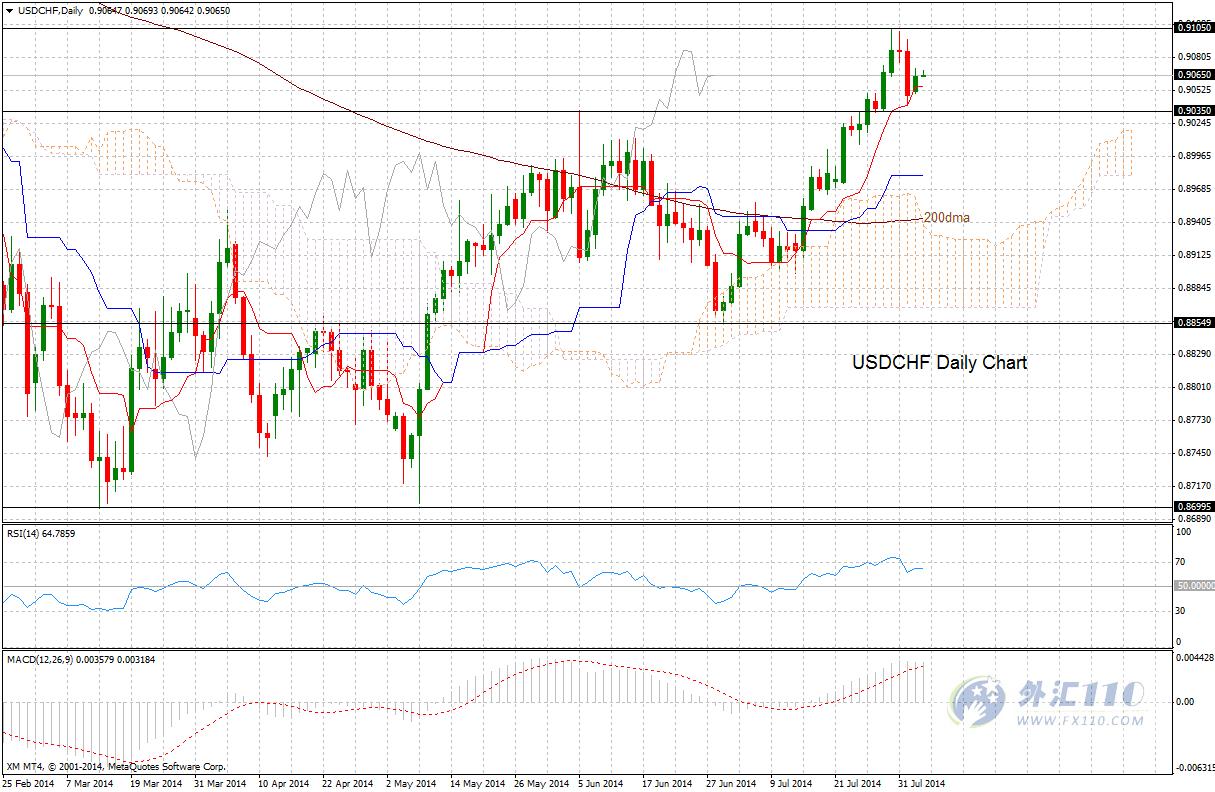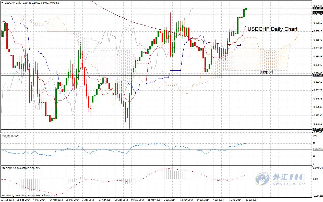 XM.com 技术分析 – 美元兑瑞郎后市看涨