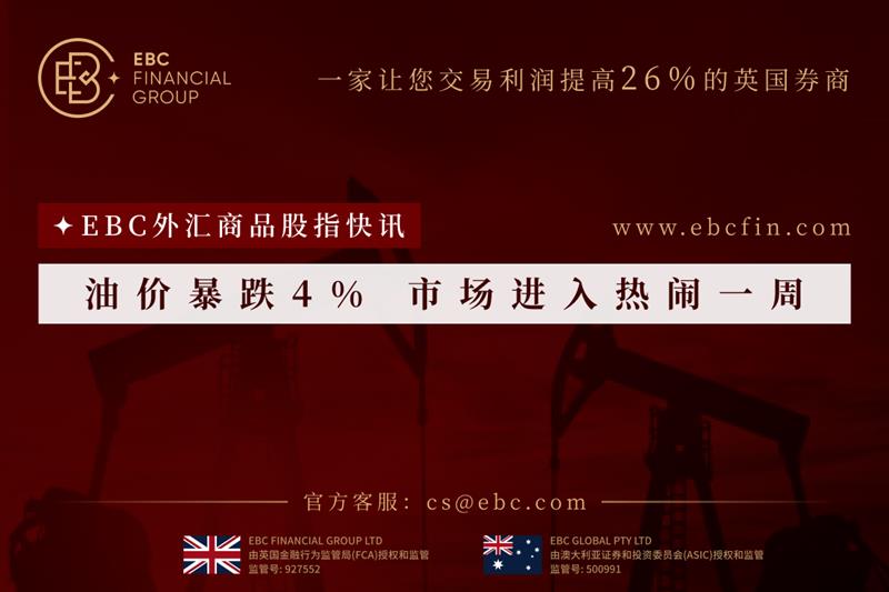 EBC金融衍生品商品股指快讯|油价暴跌4% 市场进入热闹一周